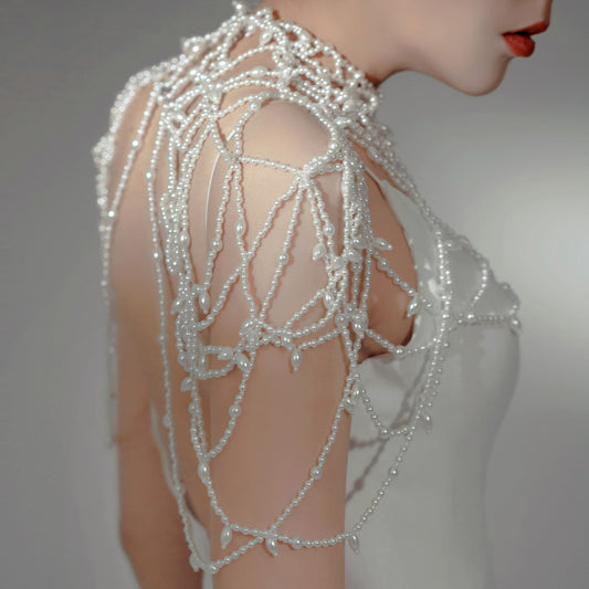 Elegant Beaded Shawl With Pearls Accessories