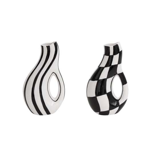 Original Medieval Checkerboard Vase Hand-painted Black And White Ceramics