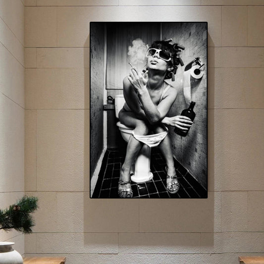 Sexy Girl Sitting In The Bathroom Frameless Canvas Painting