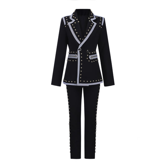 Long-Sleeved All-match Clothing Suit Women's Early Autumn New Gold Velvet Zipper Two-Piece Suit Flared Trousers